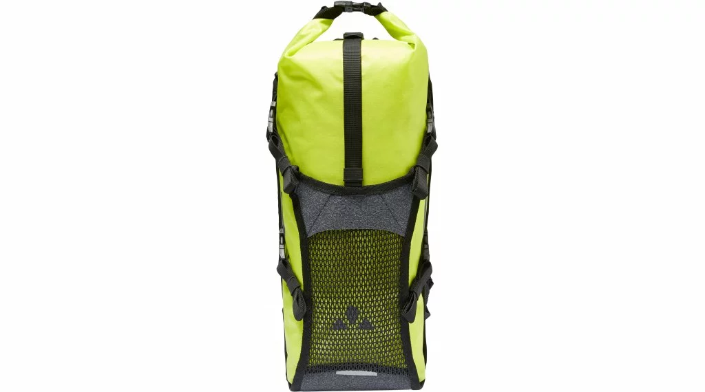 Le Trailpack II est le sac à dos étanche le plus flexible de VAUDE avec une gamme d’utilisations illimitée ! Il convient aussi bien au bikepacking qu’au gravier ou est un compagnon léger dans la vie urbaine quotidienne. La très petite taille du Trailpack le rend parfait pour les voyages à vélo, où il peut être retiré de vos bagages pour faire du tourisme, puis rangé à nouveau pour économiser de l’espace. Les détails utiles sont également impressionnants : le sac à dos d’un volume de 8 l est soudé étanche et se ferme lorsqu’il est enroulé. Il est relié au dos en bas et sur le côté, de sorte qu’un bagage supplémentaire ou une vessie d’hydratation de 2 litres peuvent être rangés dans l’espace par le haut. Un casque, une veste humide ou tout autre équipement peut être rangé derrière le rabat avant grâce à 2 sangles de compression. Les objets de valeur peuvent être rangés en toute sécurité dans une petite poche zippée à l’arrière. Des impressions réfléchissantes placées sur le devant et sur le côté du sac à dos garantissent la sécurité dans l’obscurité. Le sac de rangement imperméable et le rabat avant sont fabriqués à partir de matériaux 100 % recyclés.